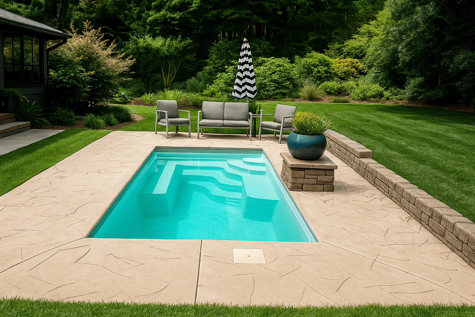 A sleek, modern fiberglass pool that combines elegance with practicality.