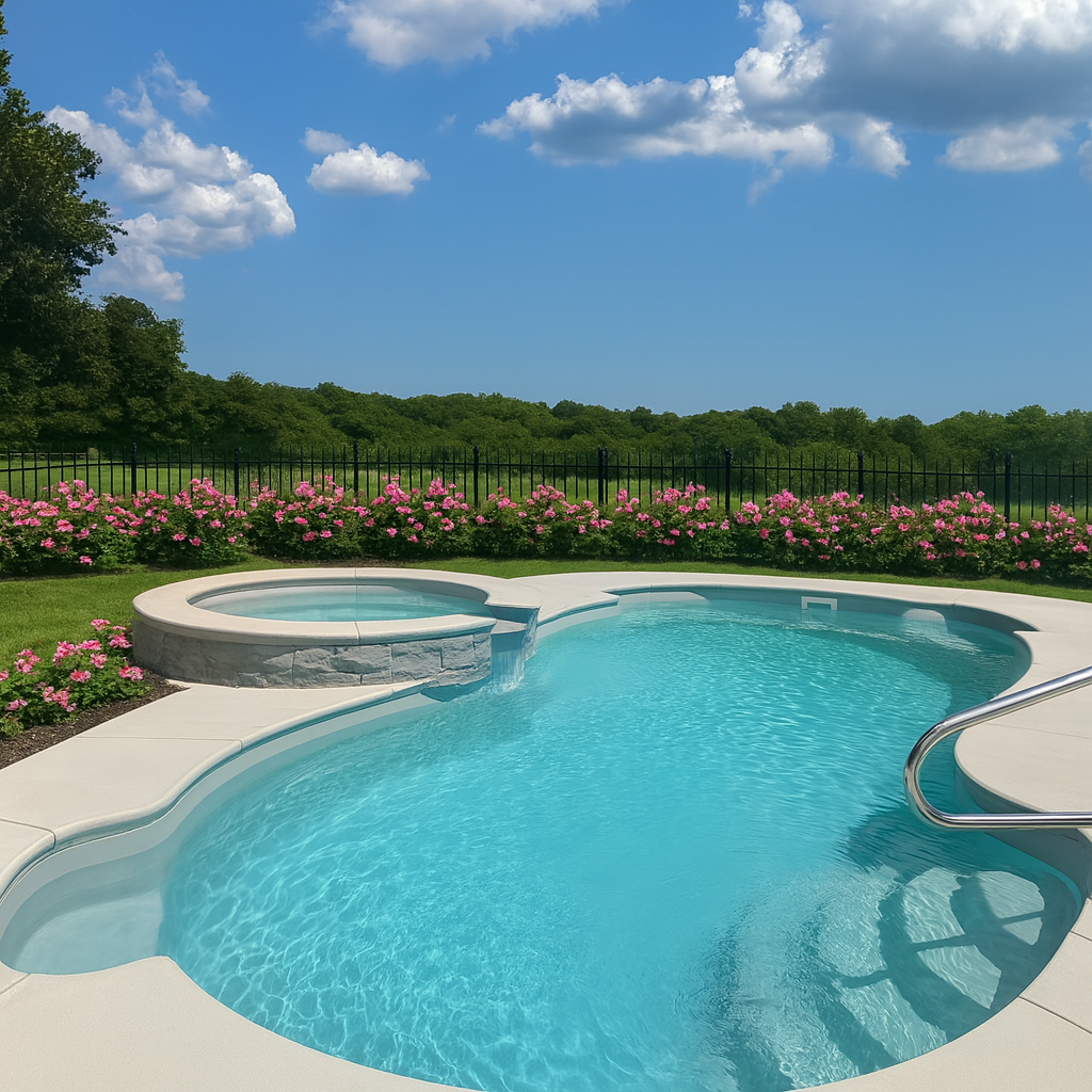 A sleek, modern fiberglass pool that combines elegance with practicality.