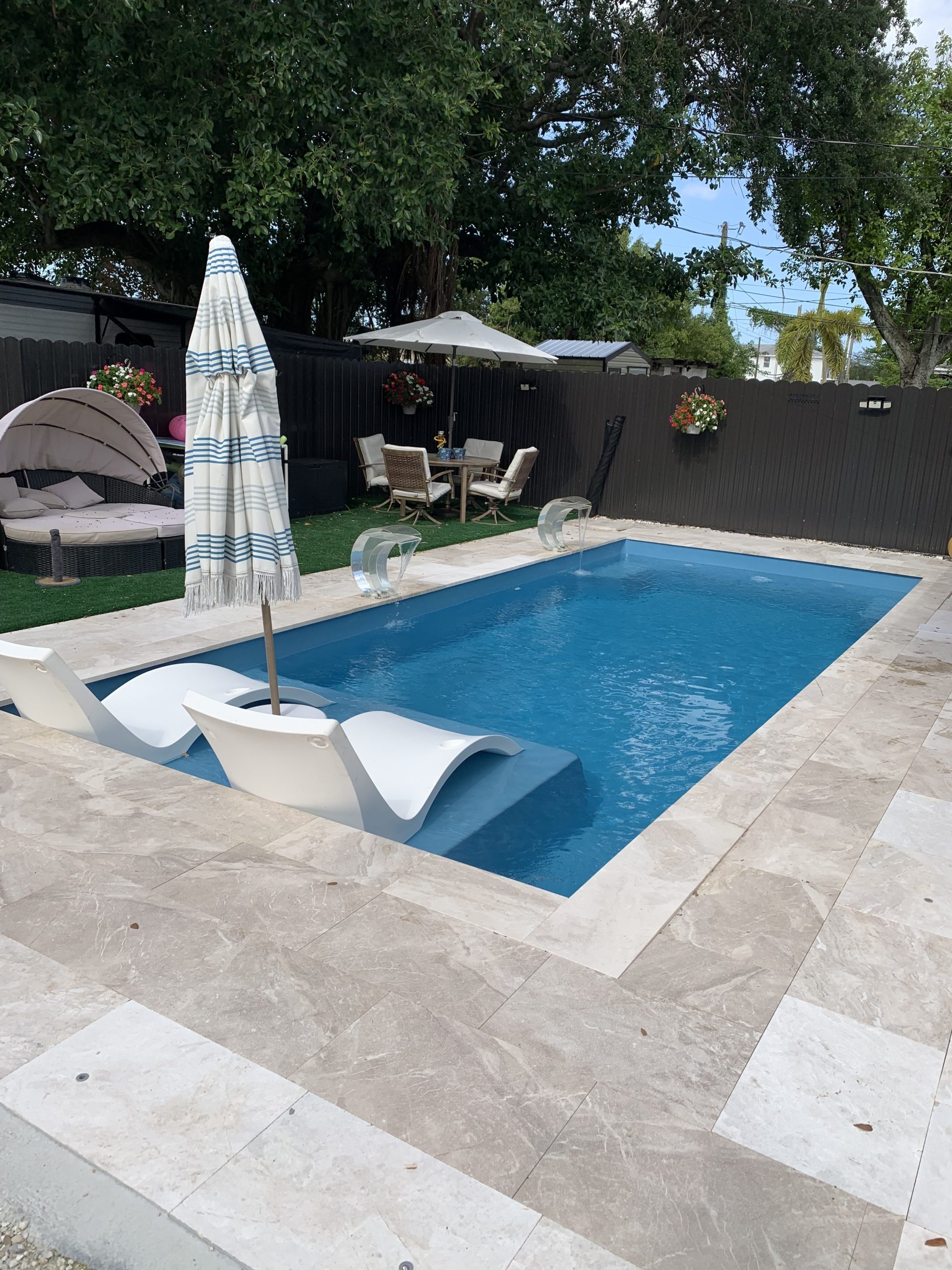 - Attractive Look: Modern fiberglass pools offer a wide range of designs, colors, and aesthetic features, including ceramic tiles, tanning ledges, and water features, making them visually appealing additions to any backyard